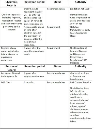 Our main reason for using your personal information is to provide educational and caring services for your children. Whilst the majority of information you provide us with is mandatory, some of it is provided to us on a voluntary basis. We will inform you when you have a choice, in order for us to comply with the data protection law. The reasons for using information is set out below and the time period for retention of this information is set out in table 1.1.